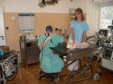 I zde jsou zvířecí pacienti při anestezii monitorováni pomocí přístrojů.